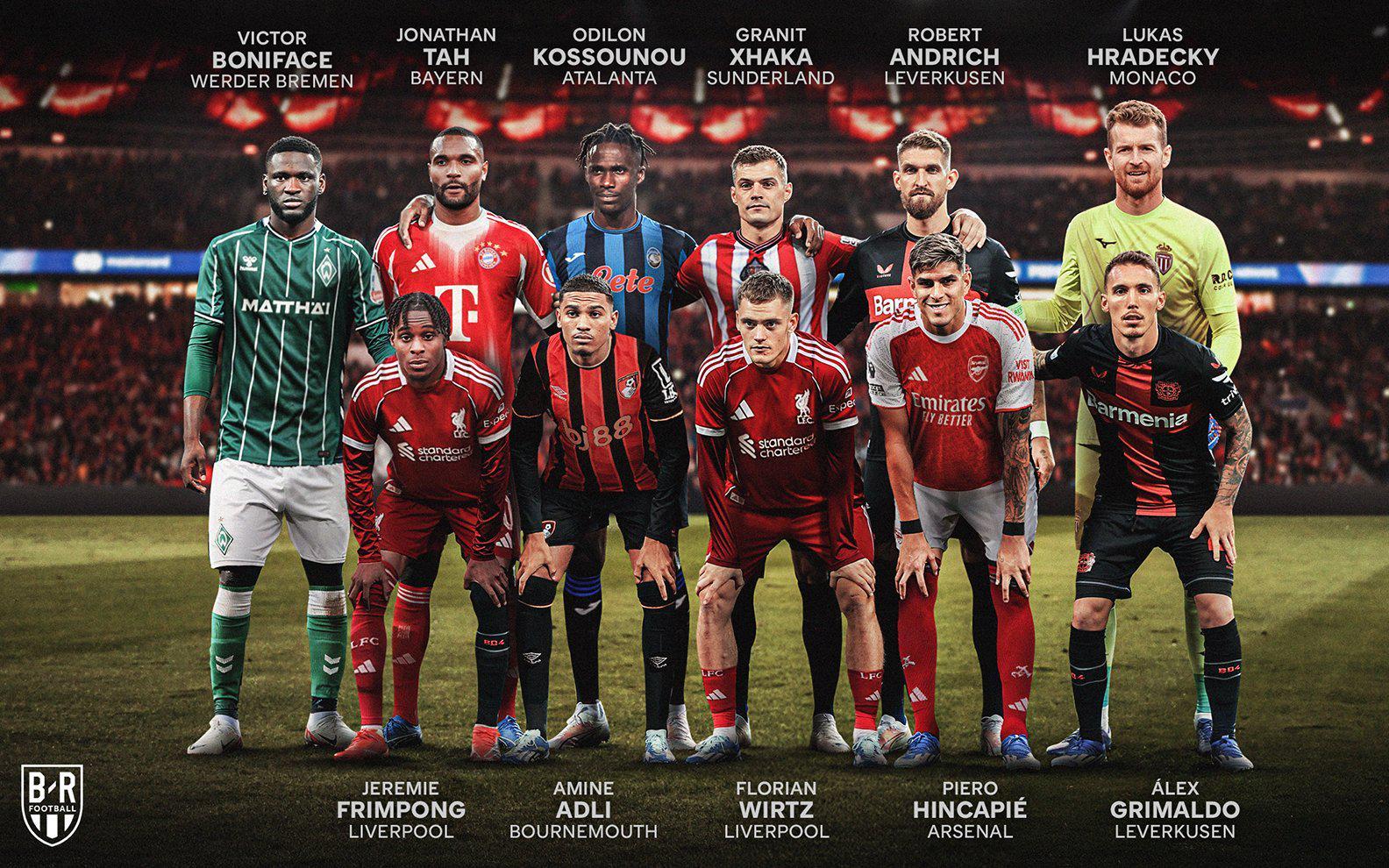 中场:维尔茨(利物浦)、安德里希、扎卡(桑德兰)